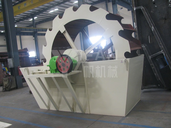 工作原理:工作時(shí),電機(jī)通過(guò)三角帶、減速機(jī)、齒輪減速后帶動(dòng)葉輪緩慢轉(zhuǎn)動(dòng),砂石有給料槽進(jìn)入洗槽中,在葉輪的帶動(dòng)下翻滾,并互相研磨,除去覆蓋砂石表面的雜質(zhì),同時(shí)破壞包覆砂粒的水汽層,以利于脫水;同時(shí)加水,形成強(qiáng)大水流,及時(shí)將雜質(zhì)及比重小的異物帶走,并從溢出口洗槽排出,完成清洗作用。干凈的砂石由葉片帶走,最后砂石從旋轉(zhuǎn)的葉輪倒入出料槽,完成砂石的清洗作用。